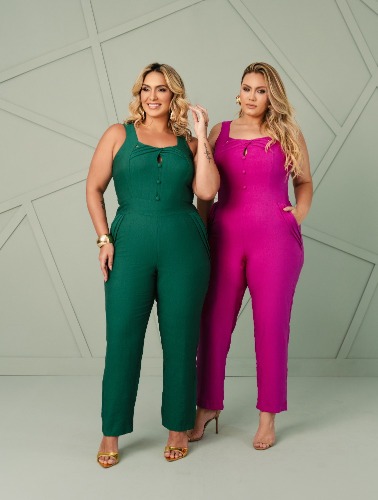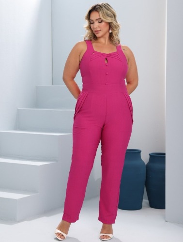 MACACÃO COM DETALHES VAZADOS E BOTÕES - FUCSIA - G
