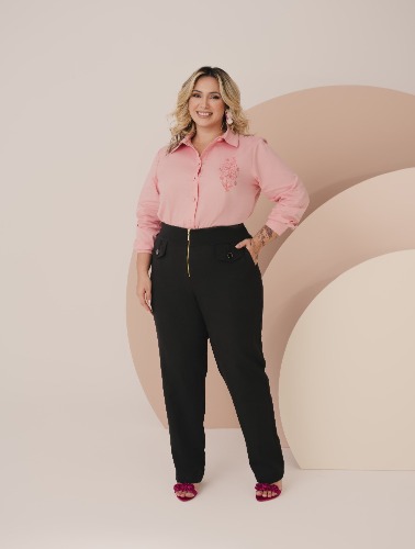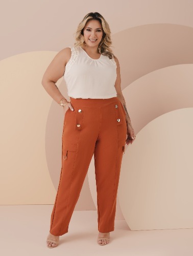 3x de R$ 65,93 sem juros CALÇA ALFAIATARIA COM CINTO DUPLO LATERAL CÓS
