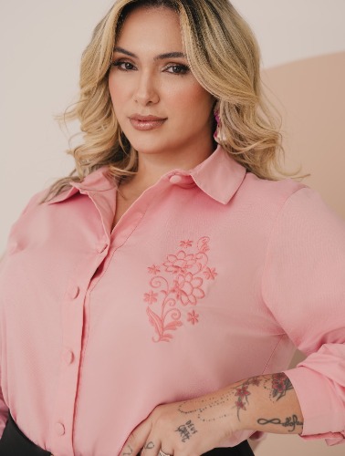 2x de R$ 59,00 sem juros CAMISARIA COM BORDADO FLORAL ARABESCO