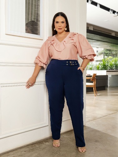 BLUSA COM BABADOS E MANGAS - ROSE - G