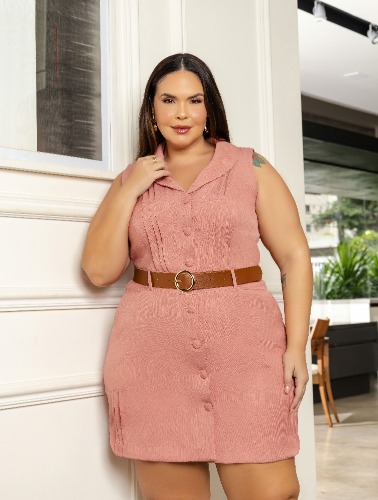 CHAMISE COM CINTO E DETALHE DE PREGAS - ROSE - G
